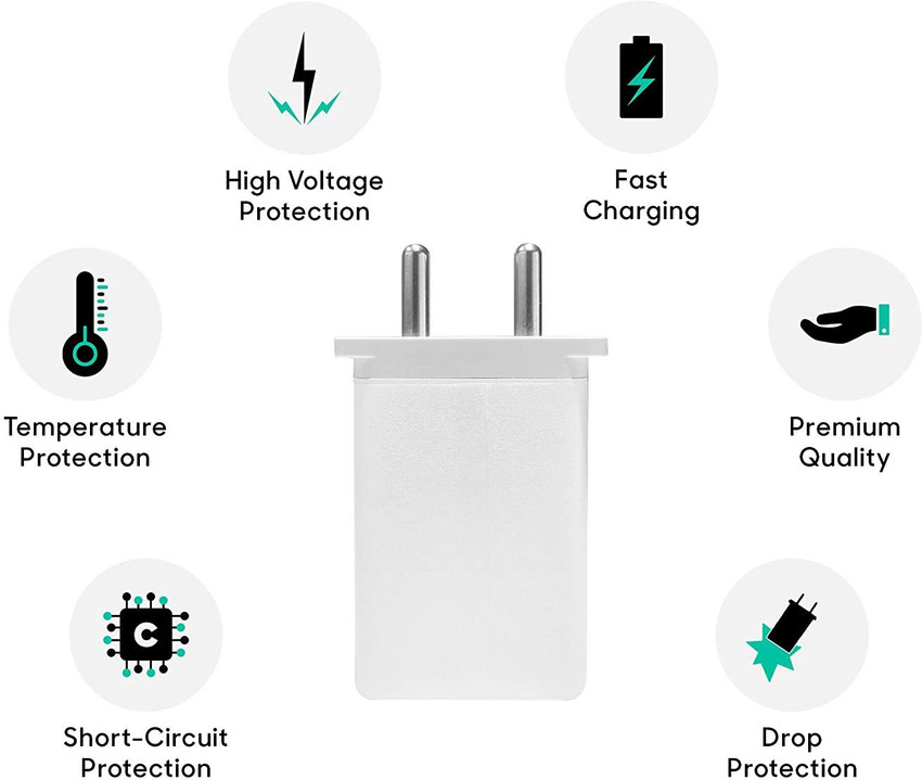Made for Indian sockets, the wall charger lets you plug in without the need for an adapter, And Over-current, Short-circuit, and Over-temperature protect your device.