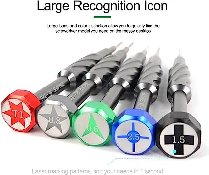 1.Special for mobile phone repair,(Midboard 2.5/T1/Y0.6/Pentagon 0.8/Cross 1.5, equipped with magnetizer); suitable for disassembly and maintenance of various telecommunication electronic equipment, to meet the disassembly and disassembly of IP/HW/OP/VI and other models, easily solve the needs of mobile phone maintenance, and improve maintenance work efficiency.