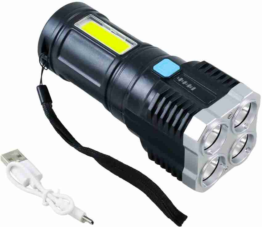 【4 Lighting Modes】Rechargeable flashlight has High, Low, Strobe and COB side lighting modes. You can choose the lighting mode according to your needs. Just press the button to change the light mode. This flashlight can be used as a standard flashlight, work light and emergency light for home use, meeting most people's lighting needs in daily life.