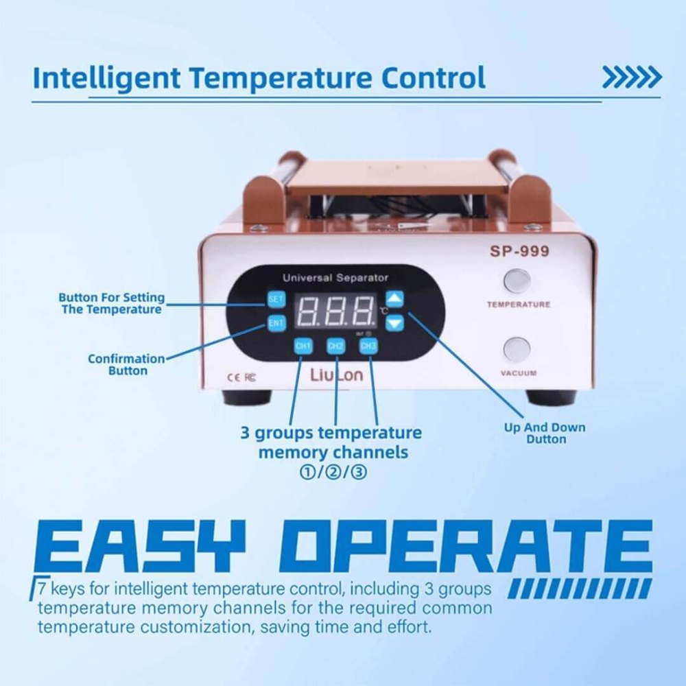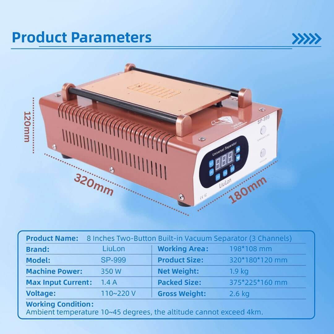 * A vacuum state and the screen will be tightly adsorbed. Press it again to turn off the vacuum state and start to break the vacuum, the screen will be automatically released. Heating switch. Press it once, the display area is on, indicating that the heating is on. When pressing it again, the display is off, indicating that the heating is off.