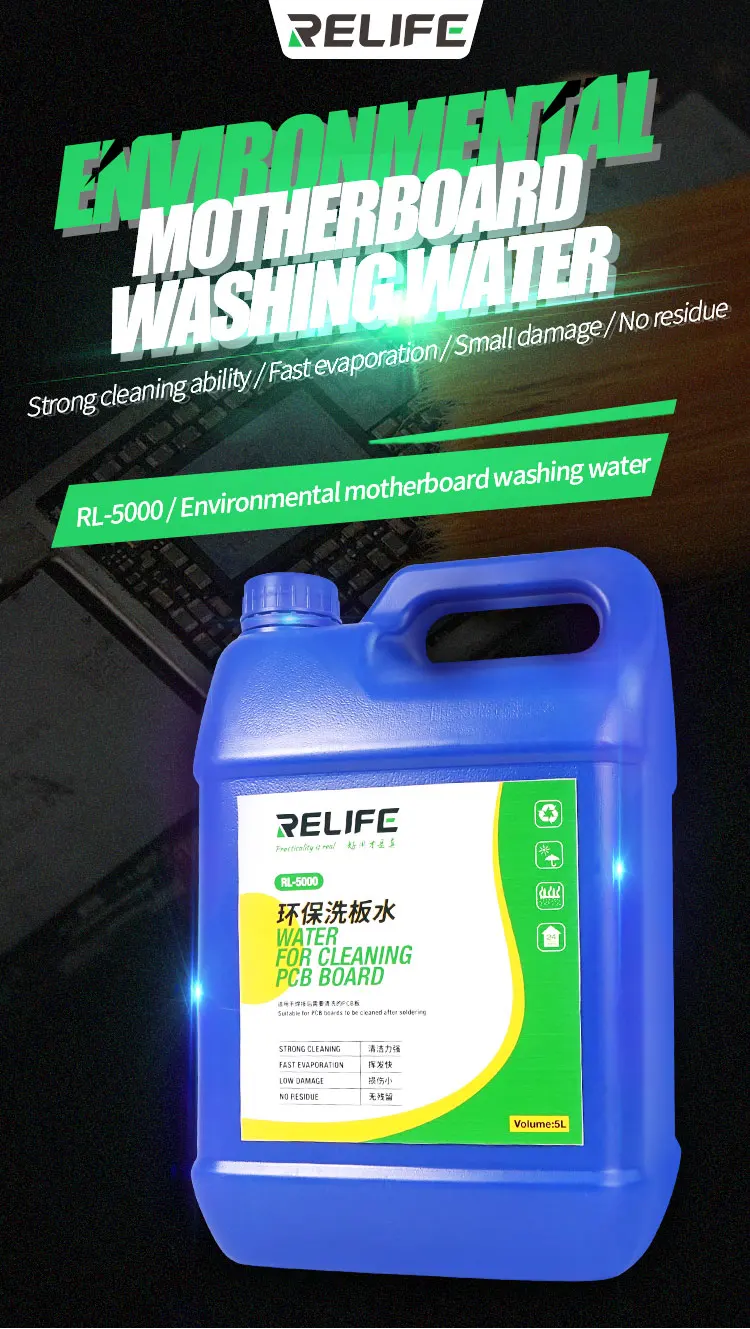 Purpose: RELIFE RL-5000 is formulated specifically for cleaning and removing contaminants, dust, flux residues, and other impurities from electronic components, especially circuit boards, including motherboards.