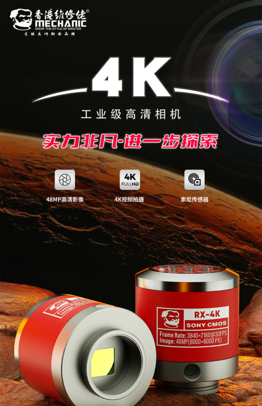 Mechanic RX-4K 4800W 4K HD Microscope Camera Sony sensor/4K video recording/1080P image output/48-megapixel photo/support TF card 64G storage Equipped with