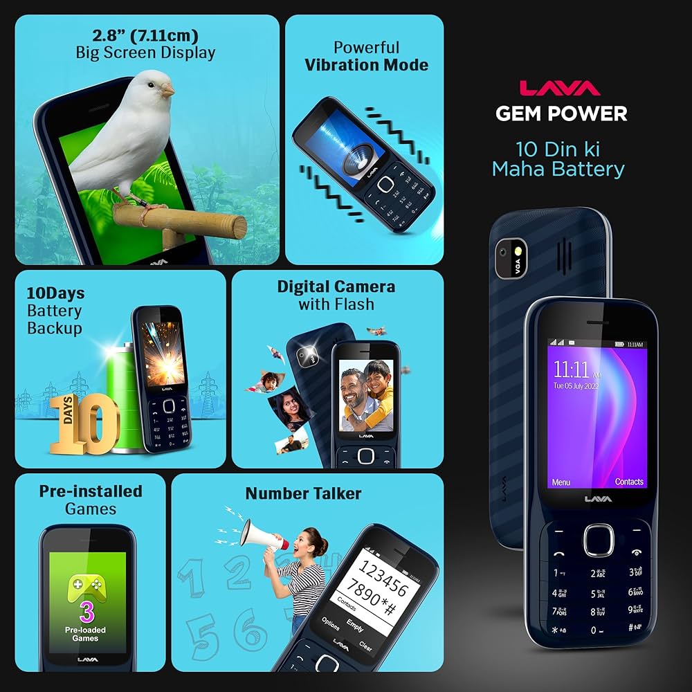 The reliable big battery feature phone, Lava Gem Power comes with Wide 2.8" display and slim premimium looks. It is equipped with a long lasting powerful 2575 mAH battery which delivers a backup up of more than 10 days in a single charge*