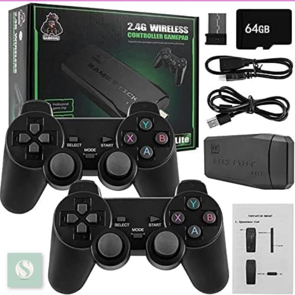 Upgrated -Smart Game Chip: wireless TV game console built-in more than 10000 Games,more than 9 Emulators are installed , and a 64GBTF card is attached which support you to game search functions, and can save/read game records.Use upgraded game chips to support 8-bit, 16-bit, 32-bit, 64-bit, 128-bit emulators. It perfectly meets your needs for image quality and game fluenc
