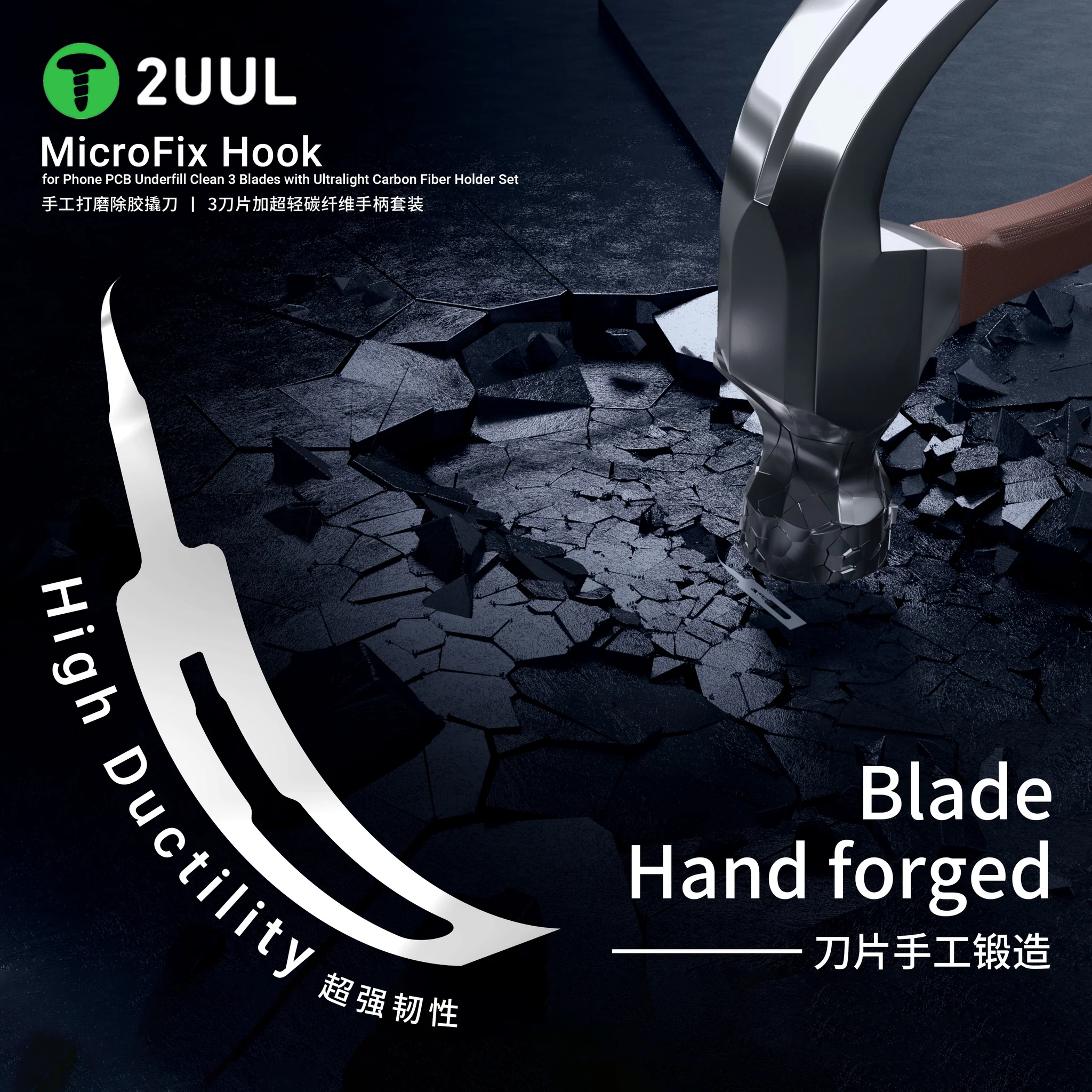 The 2UUL DA12 Microfix Hook 3 Blades Holder Set is a specialized toolset used in mobile device repair, specifically for tasks such as opening or disassembling smartphones, tablets, and other electronic devices. Below is a description of its features: