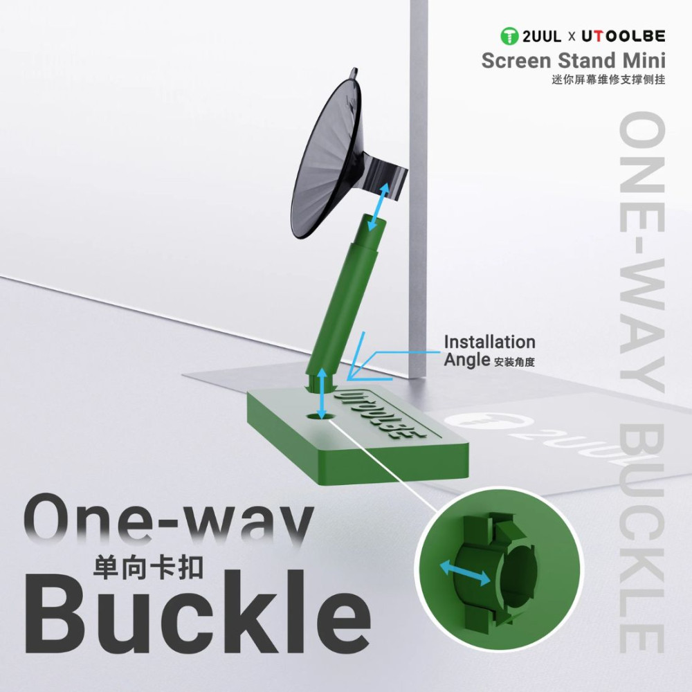 Elevate your phone repair setup with the 2UUL x UTOOLBE Screen Stand Mini. Designed for precision and stability, this compact and lightweight stand (15g) is ideal for hands-free screen repairs. Its unique one-way buckle design securely holds your device in place, allowing you to work comfortably without interference.