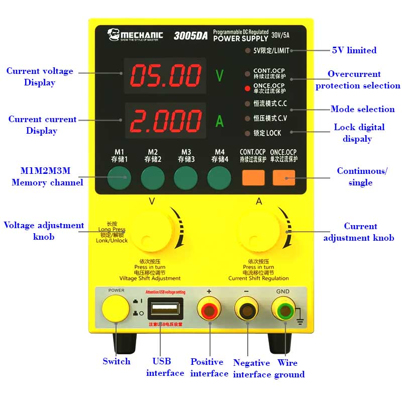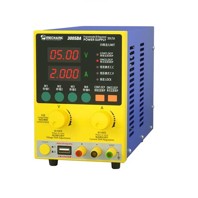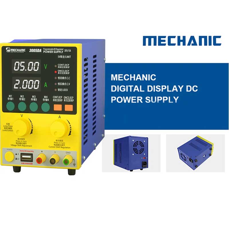 Power Supply Unit: The MECHANIC 3005DA is a power supply unit designed to provide adjustable DC voltage and current output to power various electronic devices, circuits, or components during testing, repairs, prototyping, or educational purposes.