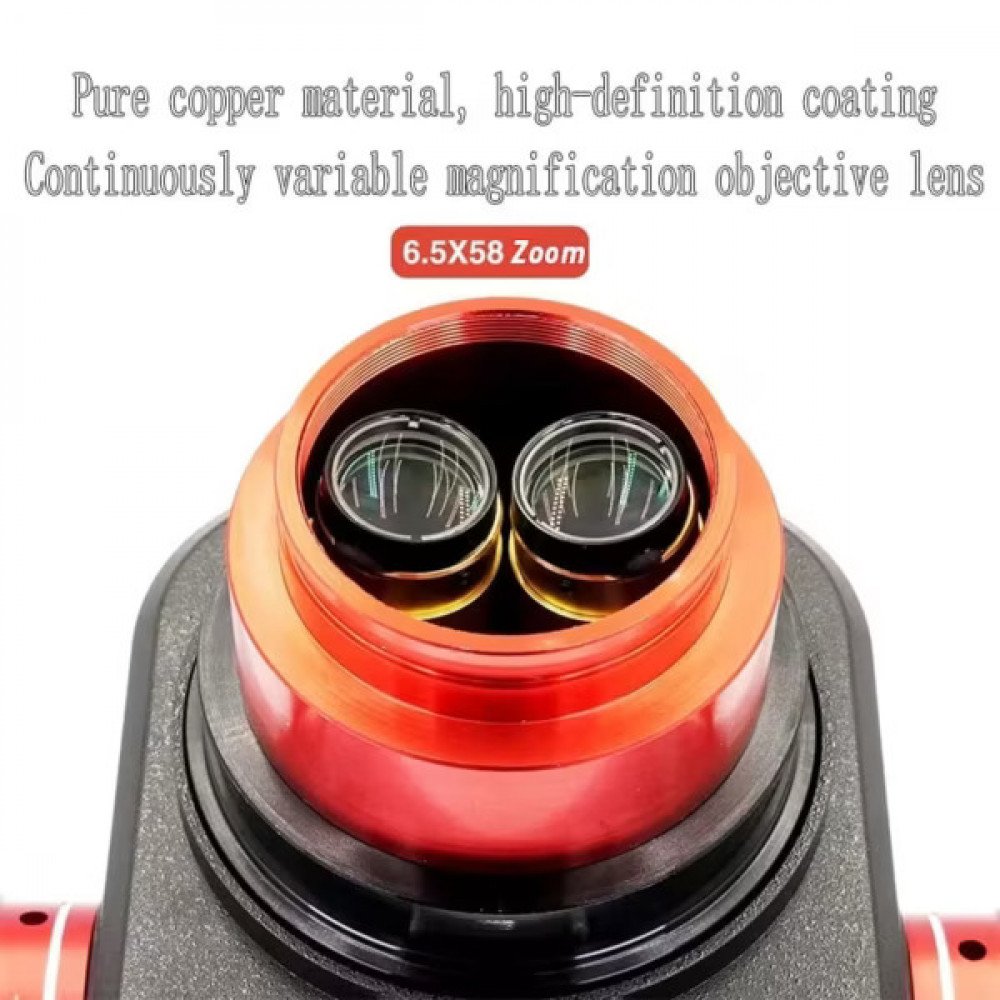 - YCS-6558X Trinocular Microscope, 10X/23 high eye-point wide-angle eyepieces, 6.5X-58X zoom objective adjustment, wide-range carrier base