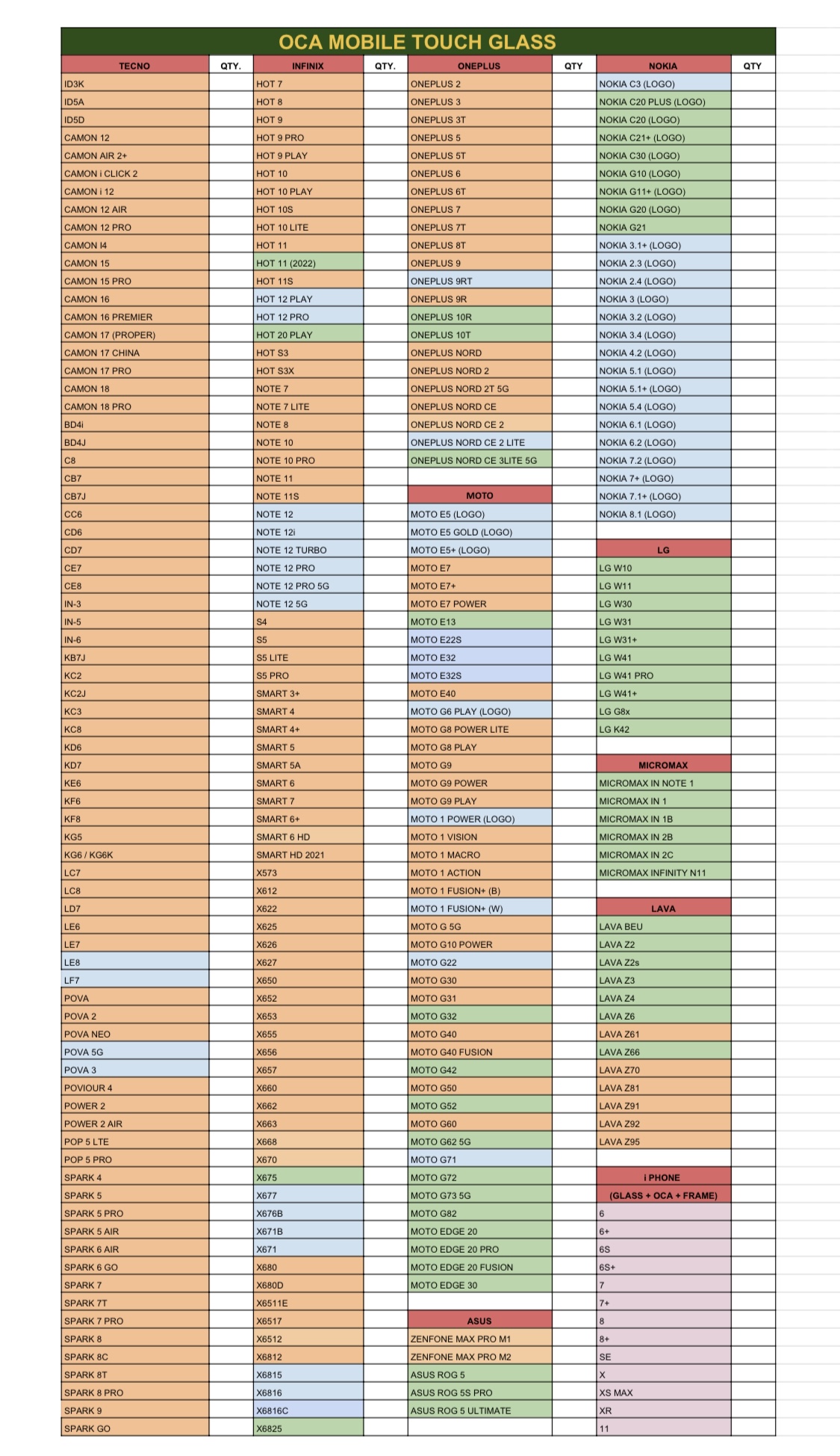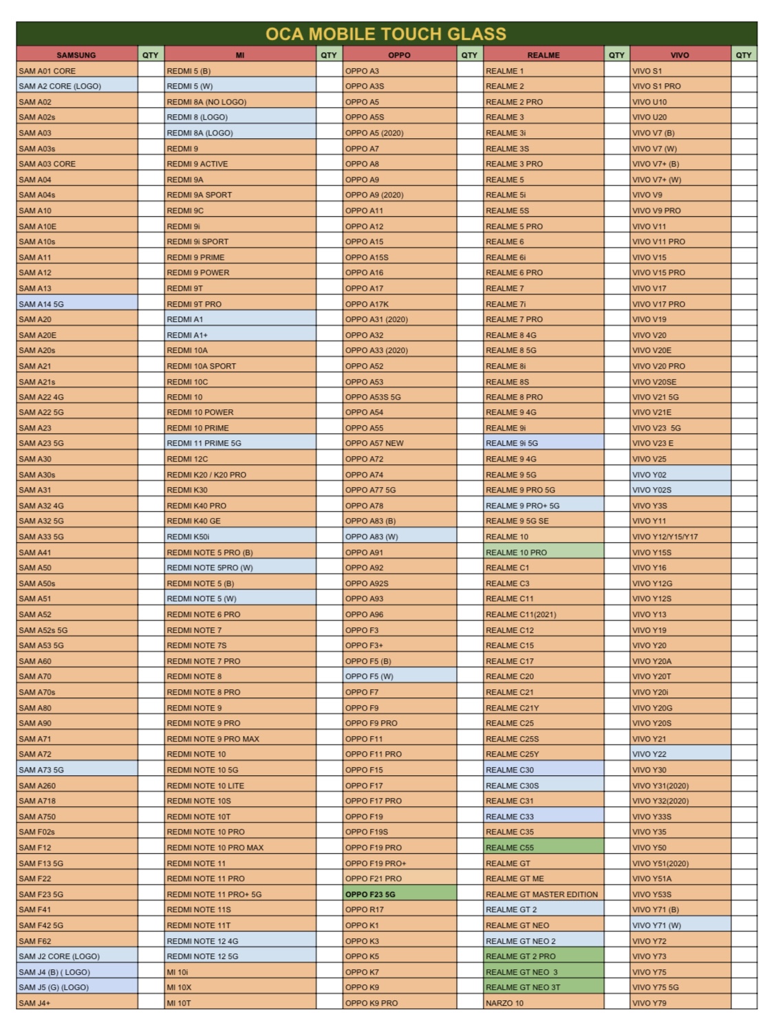 - OCA GLASS ALL MODELS AVAILBLE