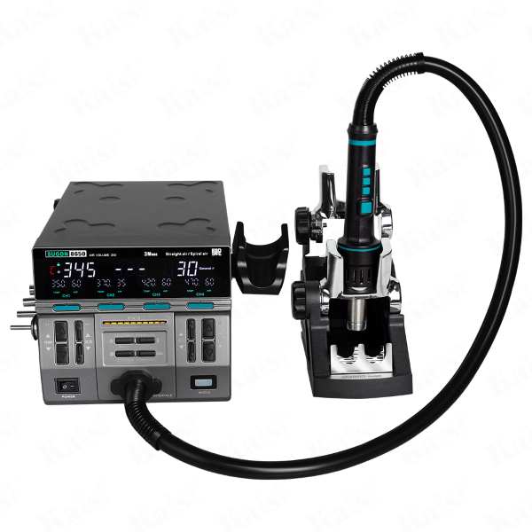 Achieve rapid heating up to 932°F in just 4 seconds with the powerful 1300W Dawning 8650. Featuring a temperature range of 212°F–1022°F and air volume settings from 1–200, this station offers 3 air outlet modes (gentle, general, rapid) for precise control. Save time with 4 customizable temperature memory buttons and a cold air function on the handle. Comes with 8 quick-swap nozzles and a silicone storage bracket. FCC, CE, and RoHS certified with auto cooling to extend lifespan. Includes 12-month warranty and support.