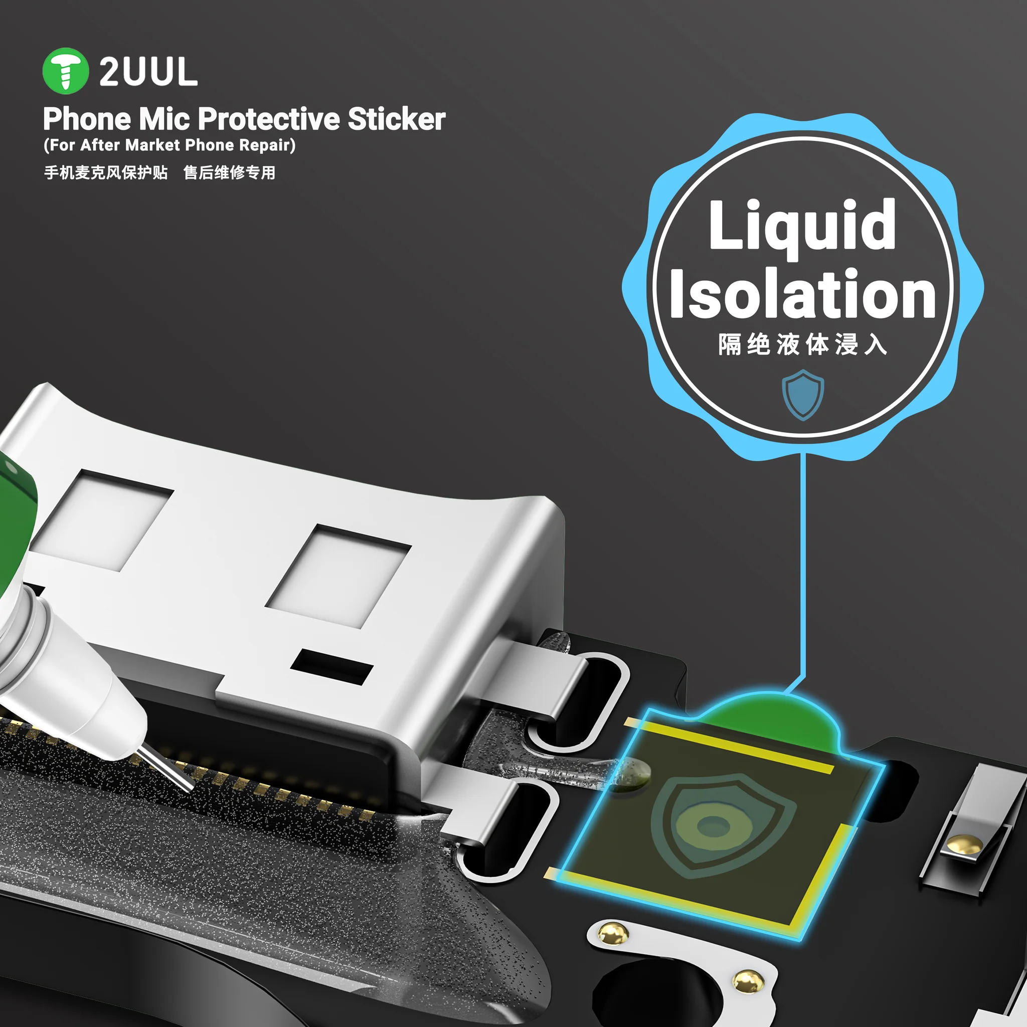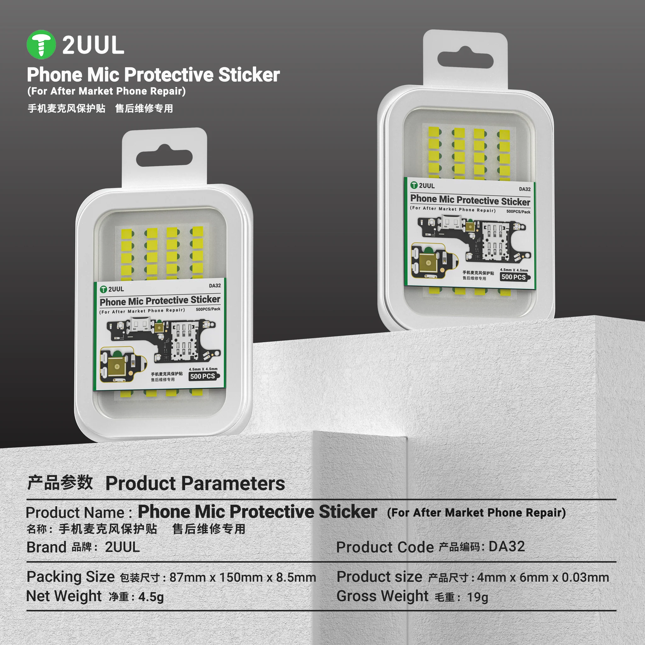The 2UUL DA32 is an ultra-thin adhesive mesh sticker used to protect the microphone hole of smartphones and other electronic devices. It acts as a barrier against dust, moisture, wind, and debris, while still allowing sound to pass through clearly.