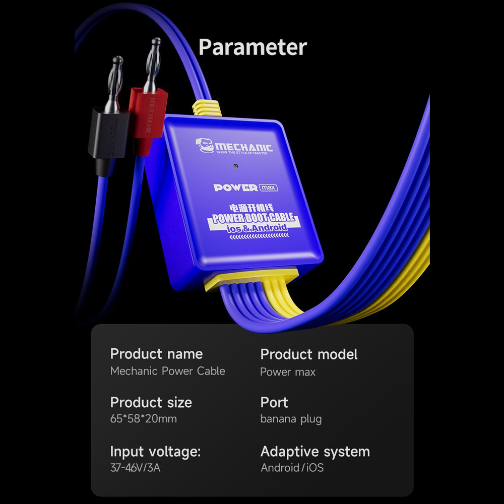 Mechanic Power Maxx Boot Cable is a high-quality, multi-functional boot and power supply cable created for mobile repair technicians who need accurate diagnostics during motherboard-level repairs. Perfect for powering dead phones, testing current flow, identifying short circuits, and monitoring power consumption, this cable delivers fast and stable results with every use.