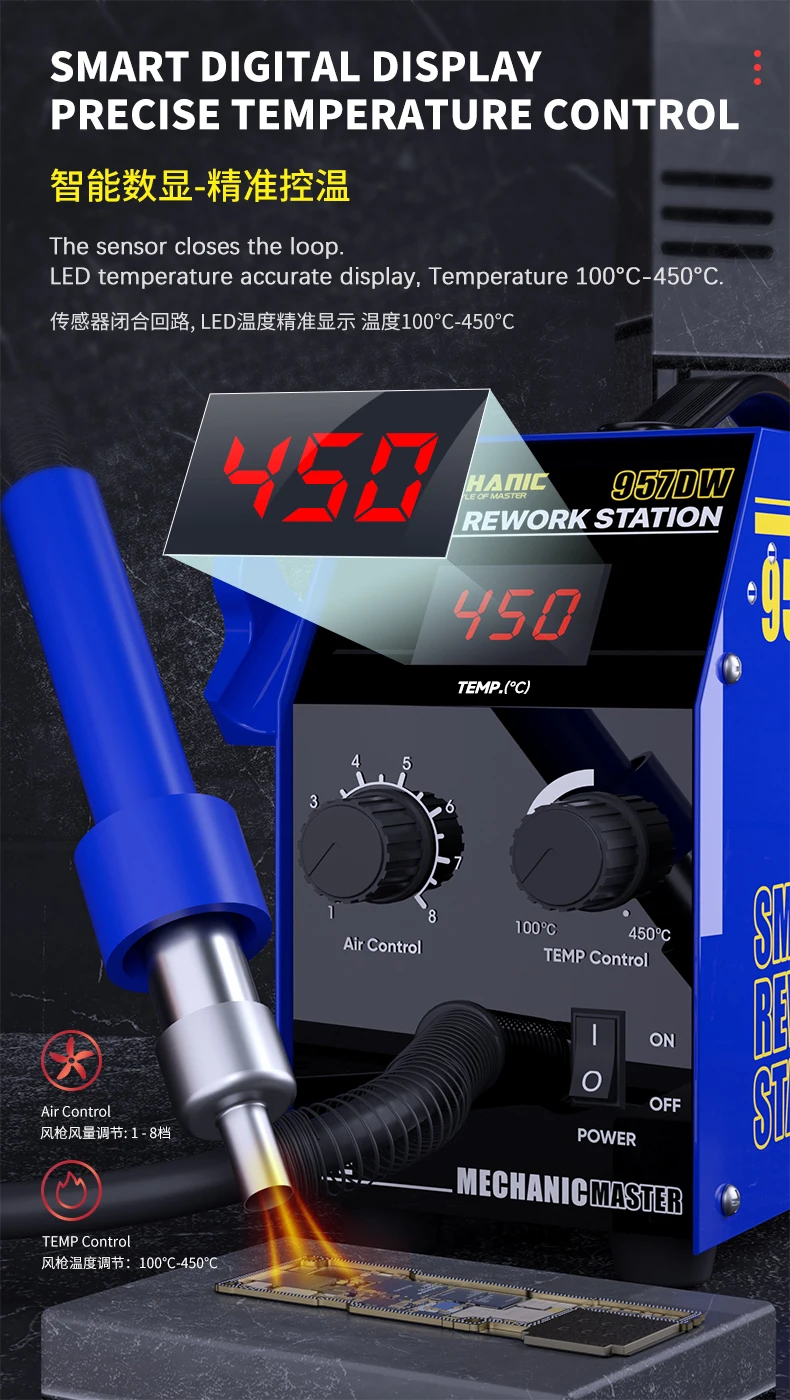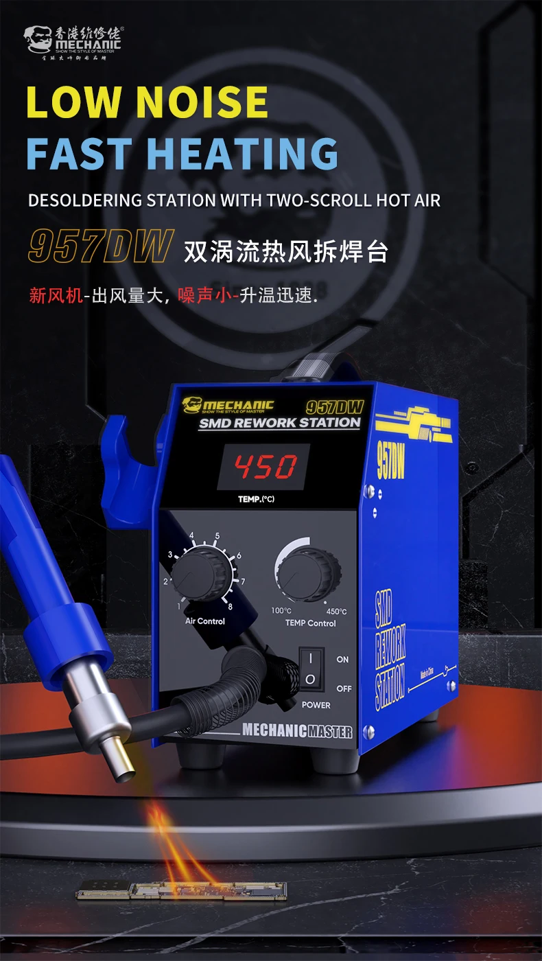 Mechanic 957DW Two-Vortexes Hot Air Gun SMD Desoldering Rework Station for Mobile Phone Repair