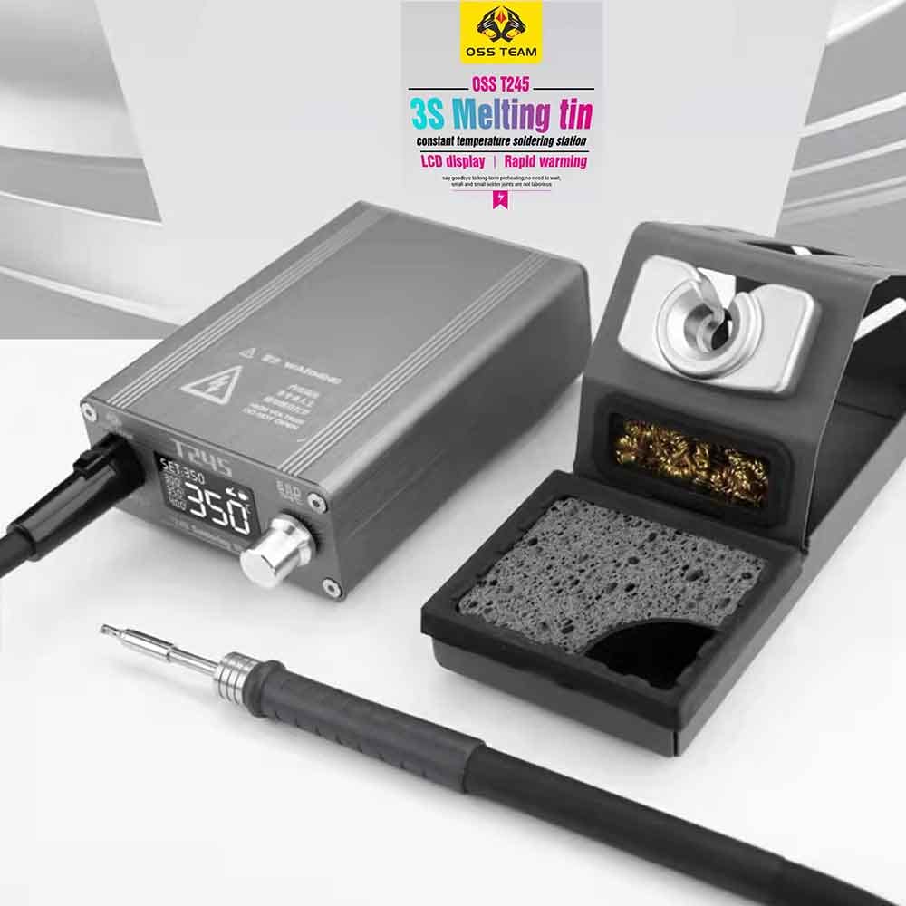 C245 tip compatibility: The OSS T245 uses C245 series integrated heating element tips, which are known for their efficiency and wide variety of shapes, such as knife, straight, and pointed