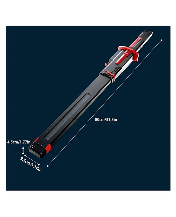 • 31.5-inch blade — A long, glowing neon blade (approximately 80 cm total length) that extends dramatically for realistic role-play.