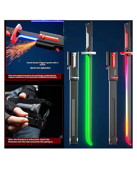 • Spark Effects — Safe, simulated sparks (often from the scabbard or blade tip when “drawn” or activated), creating firework-like bursts without flints or real fire for thrilling yet kid-safe action.