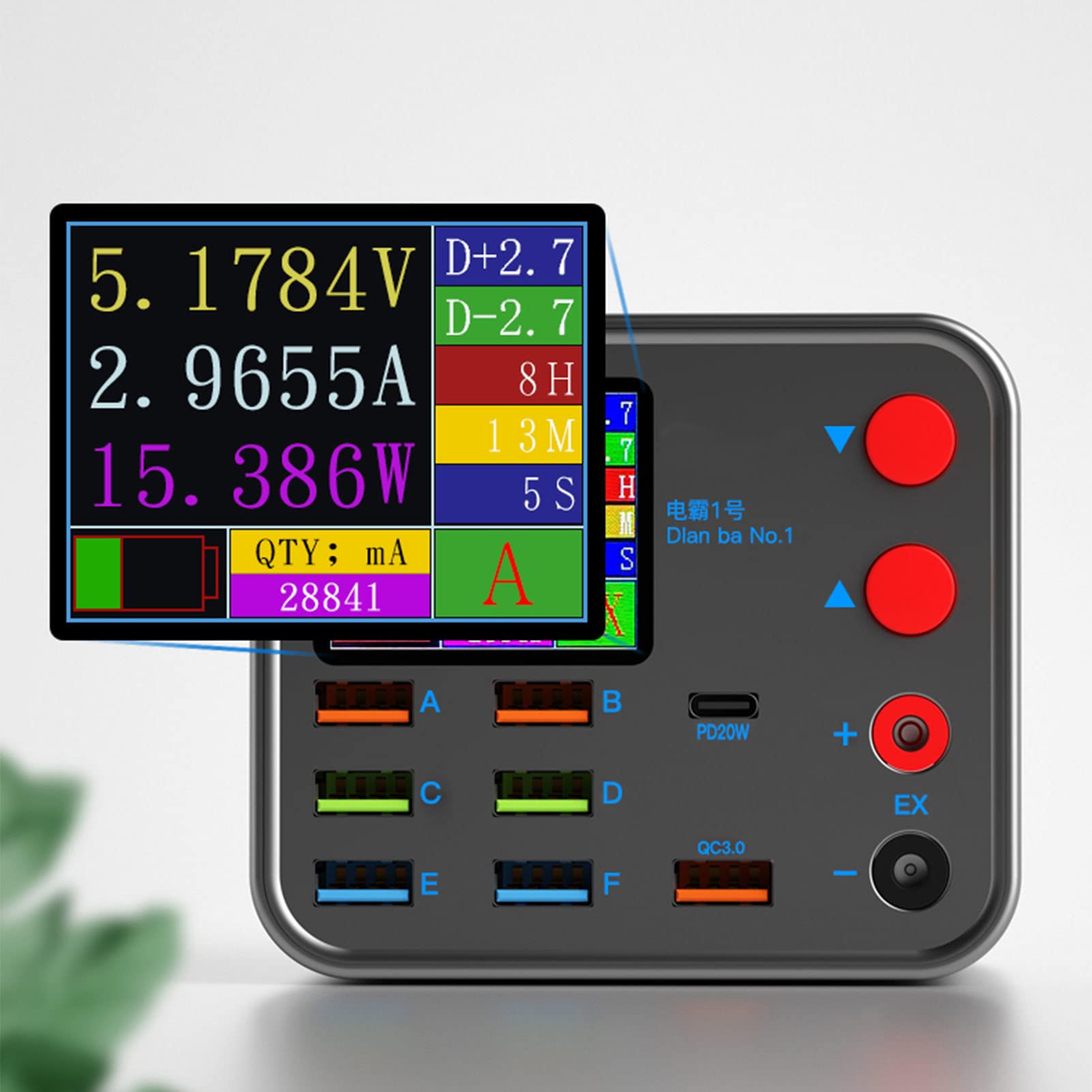 1. PORT DETAILS: The smart charging station has a total power of up to 150W and comes with 1 PD fast charge port, 1 QC3.0 45W fast charge port, 1 10W wireless fast charge and 6 USB ports