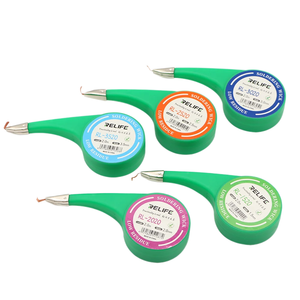 Relife No-Clean Desoldering Wick Braid come with Thumb-wheel Dispenser, Low Residue Solder Remover Wick Cord for Phone BGA PCB Board Repair Tool