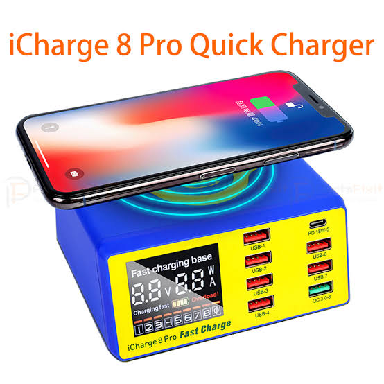 Mechanic Wireless Smart Charging Icharge 8 Pro Qc 3.0 8 Usb Port Wireless Charging Base Lcd Screen For Mobile Phone Charging