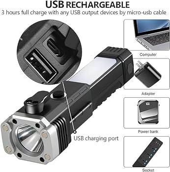 - Multifunctional safety hammer, set of broken windows, lighting, chargers and other functions in one, outdoor travel essential tools, safety and security