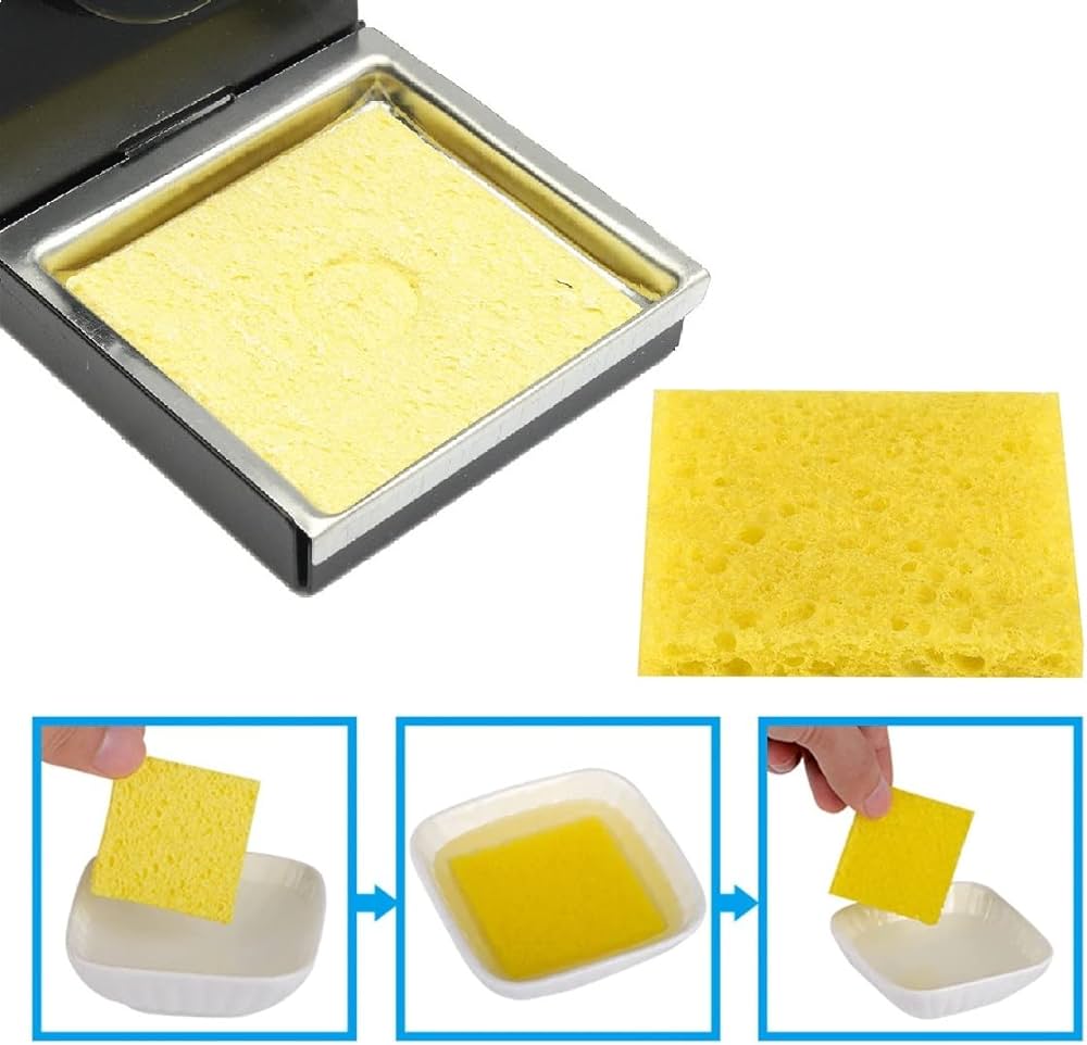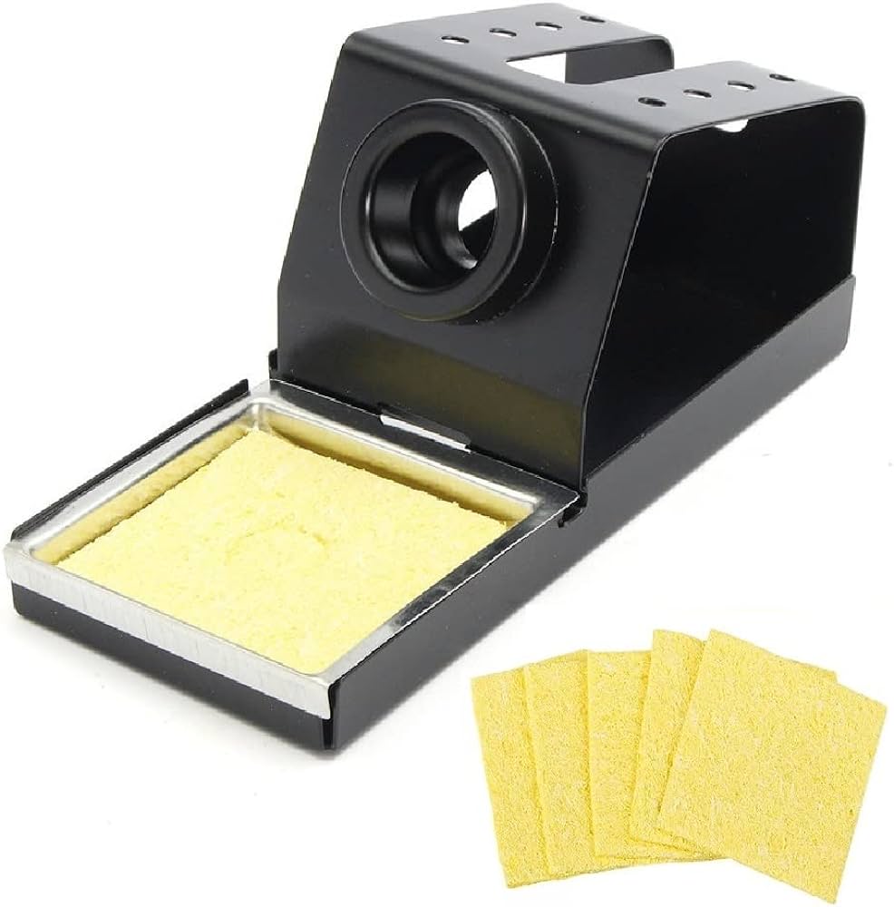 Package Content: 1 x Solder Iron Metal Stand, 5 x Soldering Iron Cleaning Sponges.