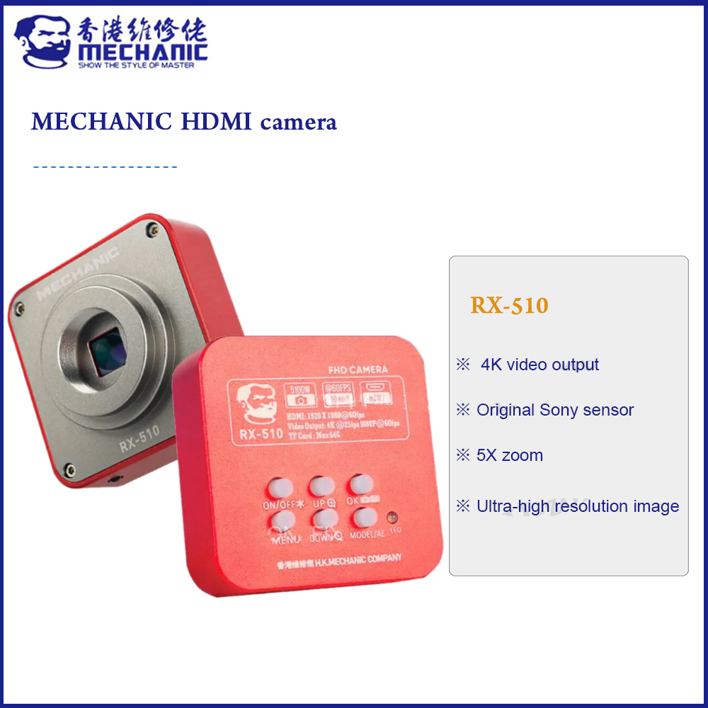 - Mechanic microscope camera RX-510 HD HDMI input digital electronic simultaneous microscope camera, Mechanic 5100W HDMI USB industrial digital video microscope camera for mobile phone CPU PCB chips phone repair