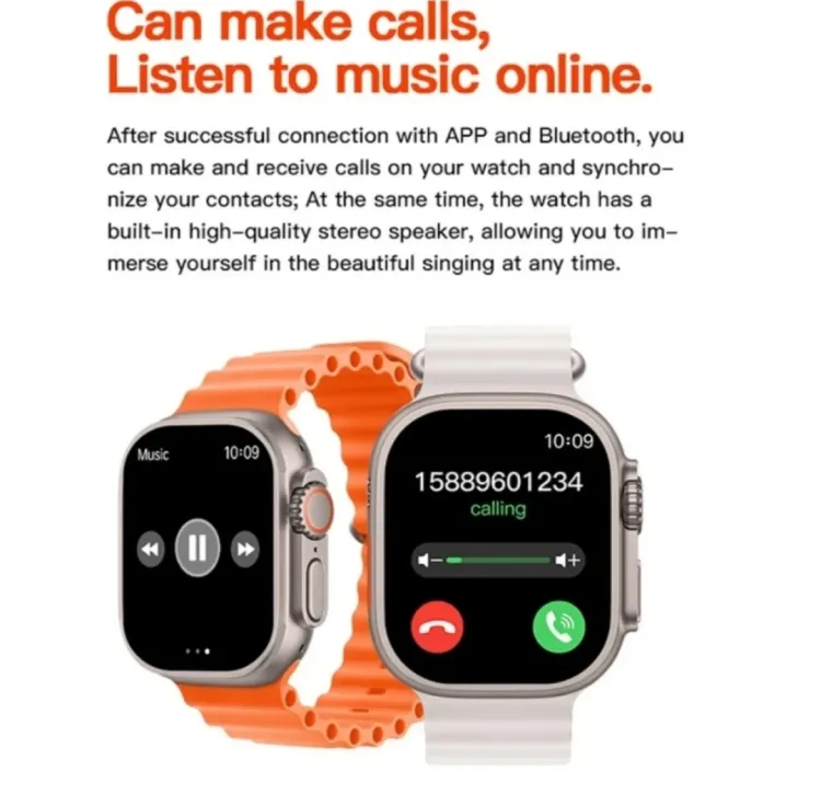 Product details of T800 Ultra Smart Watch Series 8 1.99" Bluetooth Call Smartwatch Heart Rate Sleep Monitoring IP67 WaterproofBT: 5.0LCD 1.99"Heart rate sensor & Temperature SensorMotor: YESCharging mode: Magnetic wireless chargingMicrophone:YESSide key:YESHorn: YES,Two in one loudspeaker and handsetPower amplifier: YESBattery capacity: 220mahAppearance material: Zinc alloyIP67 life waterproof.