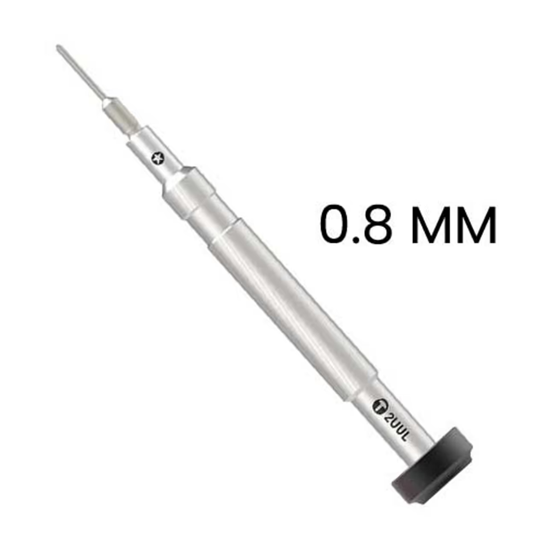 2. It features a 0.8mm screwdriver tip size, which indicates the width of the screw head it's designed to work with.