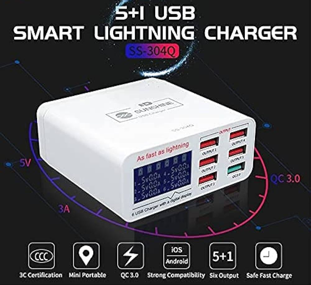 Sunshine SS-304Q 6 Port USB Smart Lightning Charger