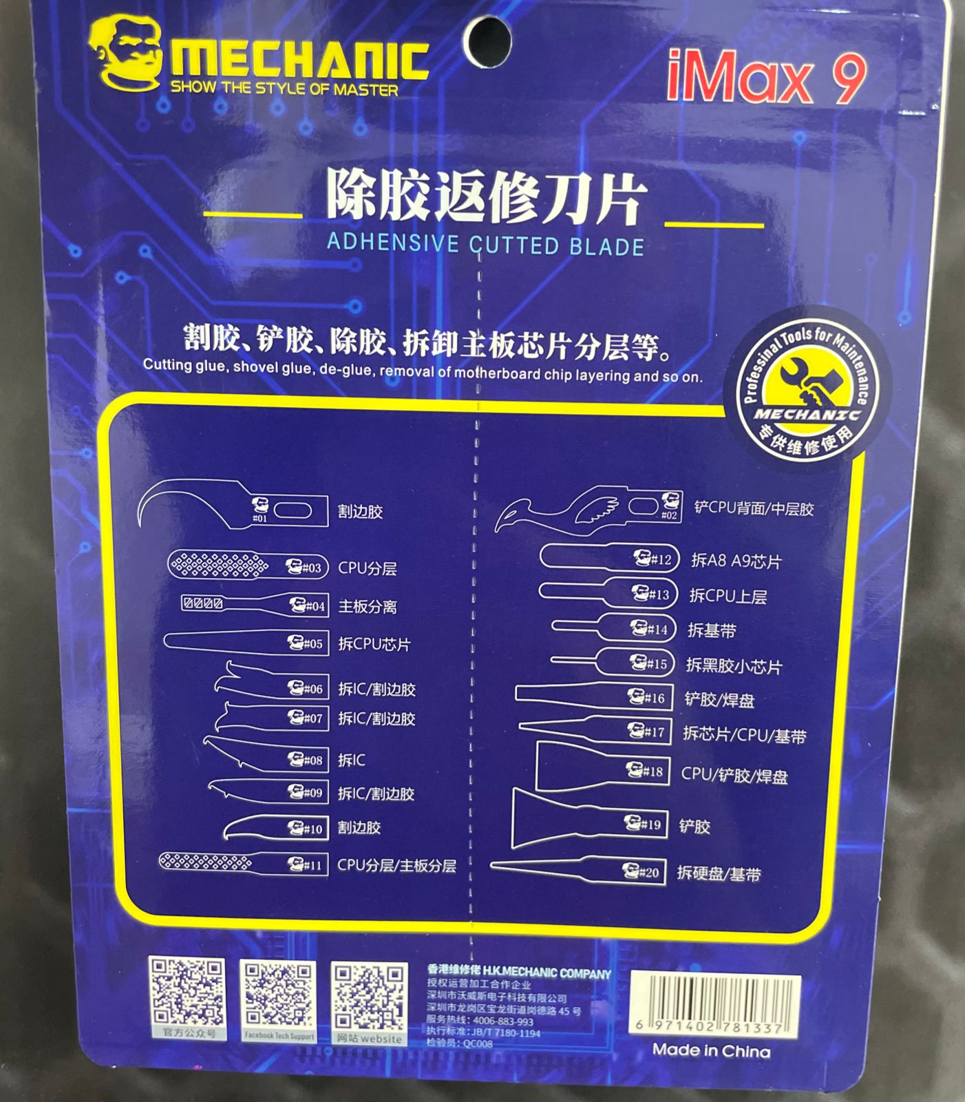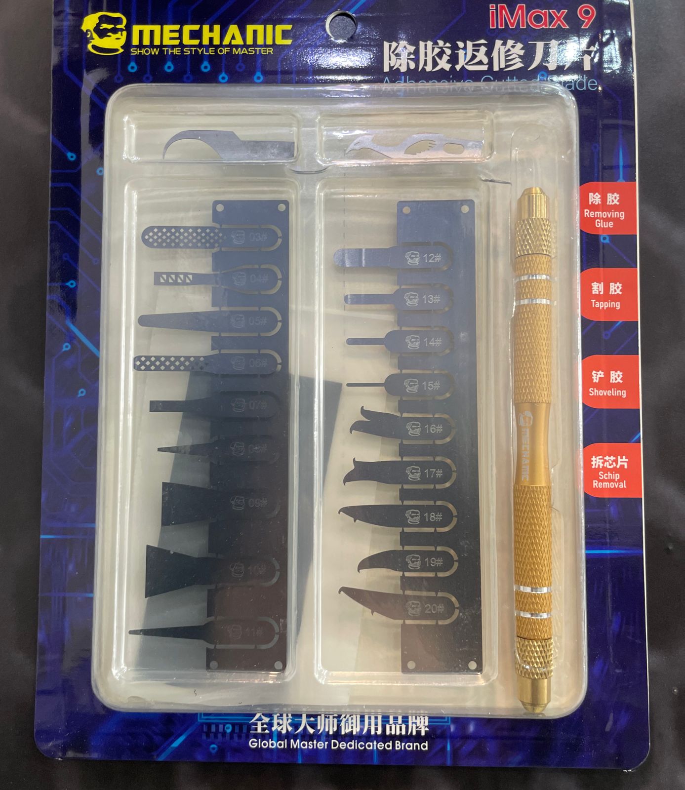 The MECHANIC iMax 9 Adhesive Cutted Blade Kit is a versatile toolkit for cutting and adhesive removal tasks in various applications. Whether you’re a professional technician or a DIY enthusiast, this kit provides a range of specialized cutting blades to help you perform precision work, remove adhesives, and tackle various projects effectively and with control.