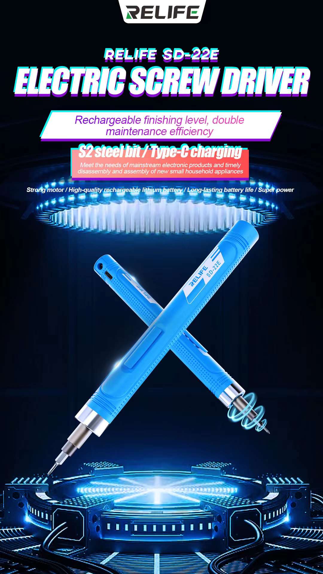 Relife SD-22E Precision Wireless Electric Screwdriver with 10 Screwdriver Bits