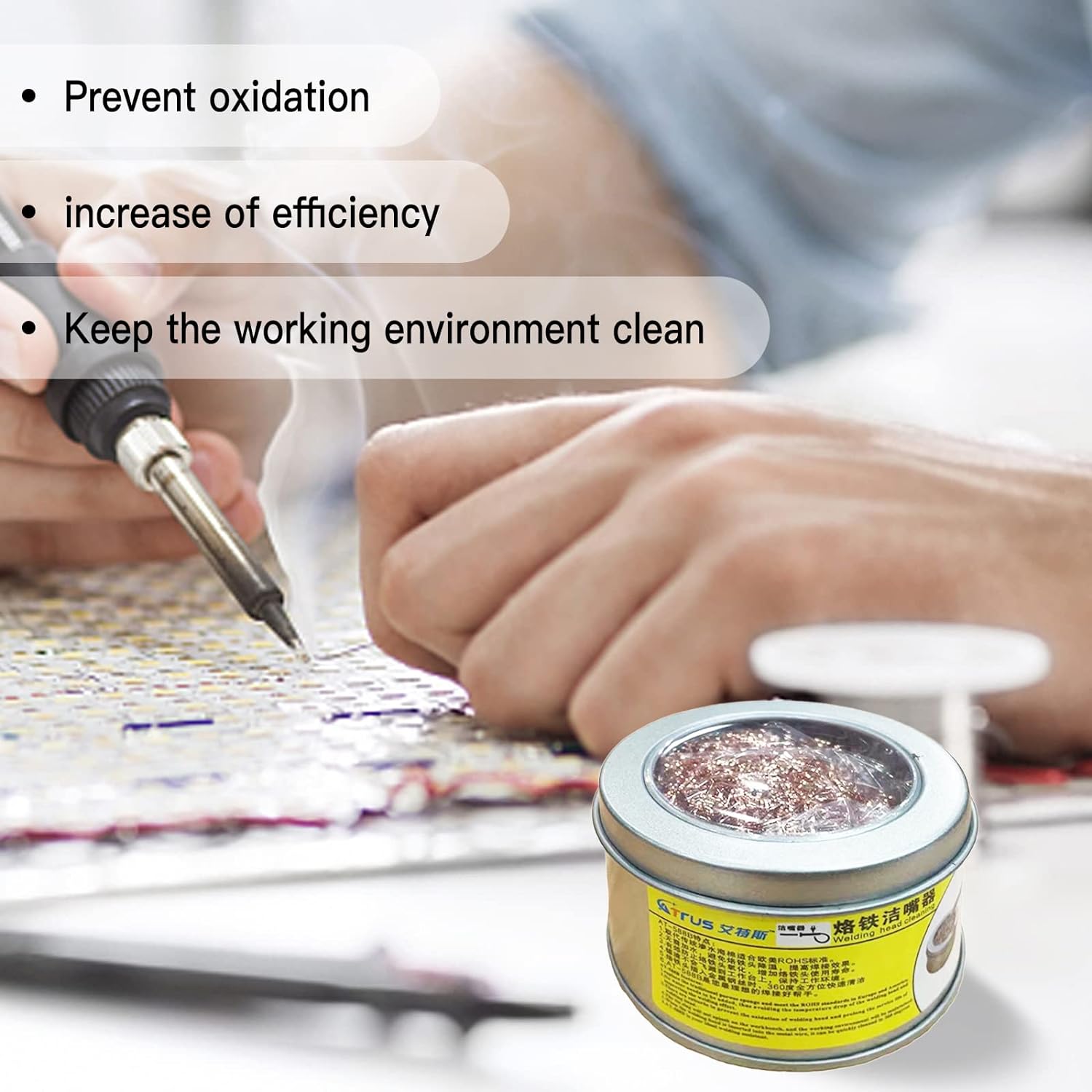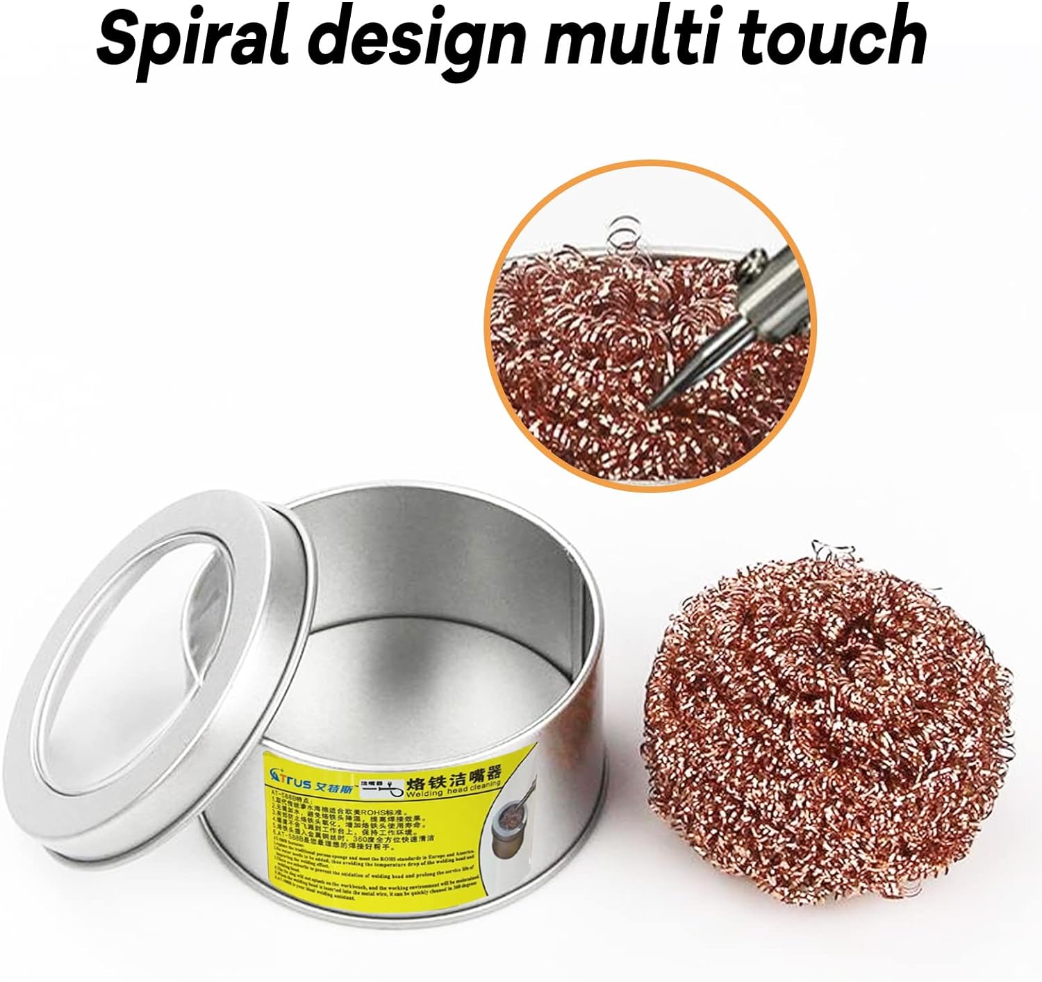 Cleaning Sponge Solder Iron Tip Cleaning Nozzle Tip Wire Cleaner Ball for Cleaning Soldering Irons and Tip Desoldering Cleaning Ball Soldering Iron Mesh Filter Cleaning Nozzle Tip Wire Cleaner Ball Metal Dross Box Clean Ball, equelent of Hakko 599B-02 Wire-type soldering iron tip cleaner.