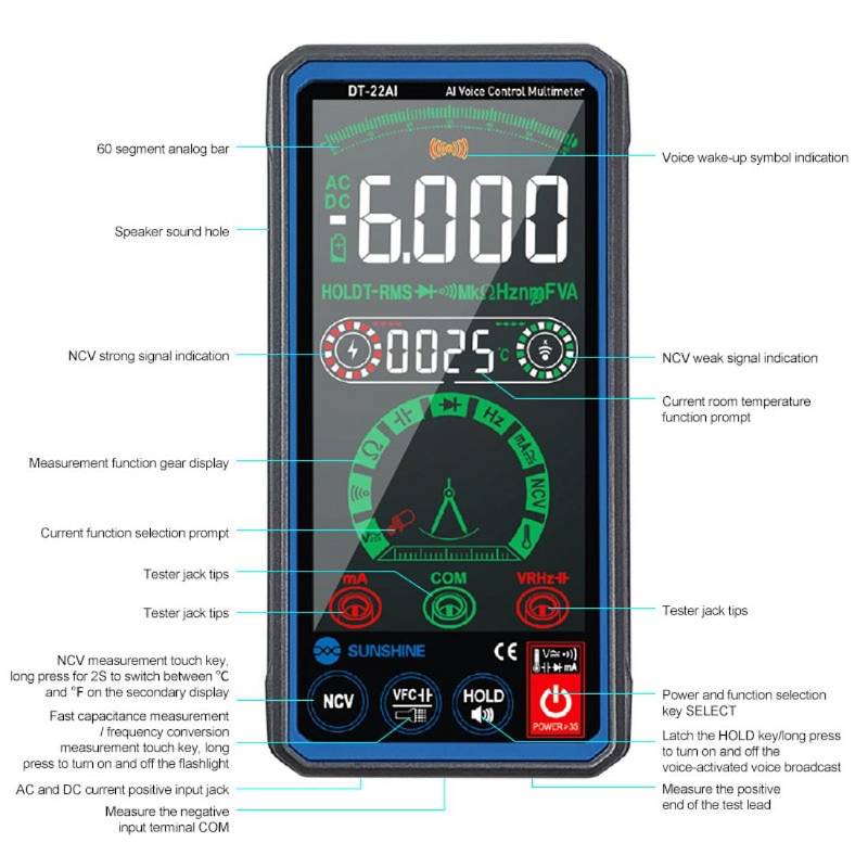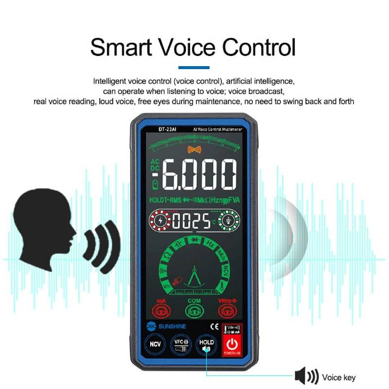 SUNSHINE DT-22AI Voice Multimeter With Touch Control for Phone Screen Repair, SUNSHINE DT-22AI Multimeter Fully Automatic High Precision Color Touch Screen AC DC Voltage and Current Resistance Measurement.