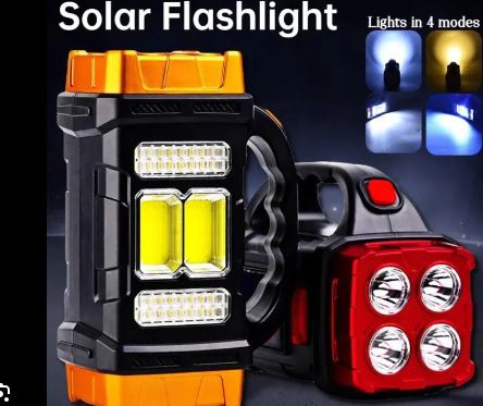 FEATURES: Dual Charging Mode (Solar + Wire), Dual Light Mode (Laser LED + SMD Tube), Dual Use Mode (Flashlight + Work Light), Dual ON/OFF Button, Long Battery Backup, Light Weight, Portable etc SOLAR CHARGING: You Torch Automatically Charge Using Solar Light which Increases Torch Run Time. USB Charging Cable also provided in the box DUAL LIGHT MODE: Torch Comes with White + Warm Light (Yellow Light) Mode. Side Lamp Comes with LED + SMD Light Mode TORCH+LAMP: Multifunctional Solar Lamp + LED Torch can be use as Flashlight Torch as well as LED Lamp for Emergency Use Battery Capacity: 4.5V 1500mAh Li-Po Battery (Included) ; Power: 25 Watt, Charging Time: 2-3 Hours ; Run Time: Lamp - Upto 5 Hours and Torch - Upto 8 Hours (Continuous Mode)