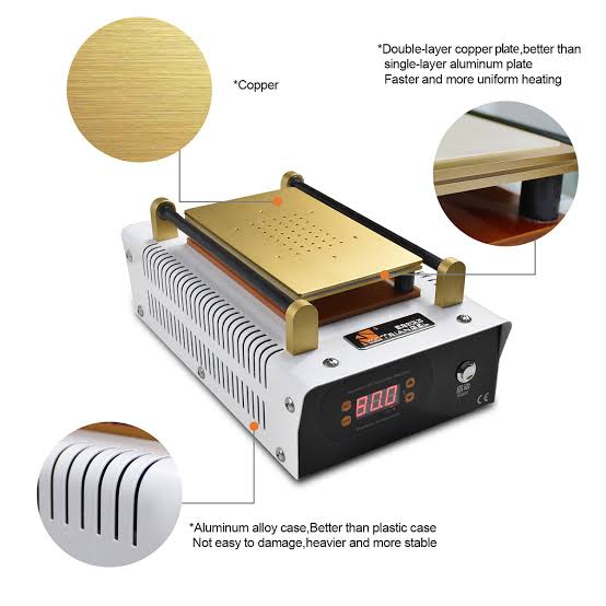 CP-201 LCD separator machine, built-in large suction pump, and using double-layer copper plate design, faster and more uniform heating, and aluminum alloy shell make it sturdy and durable. It is a cost-effective and compact phone screen refurbishing tool, suitable for 7 inches phone screen crack repair.