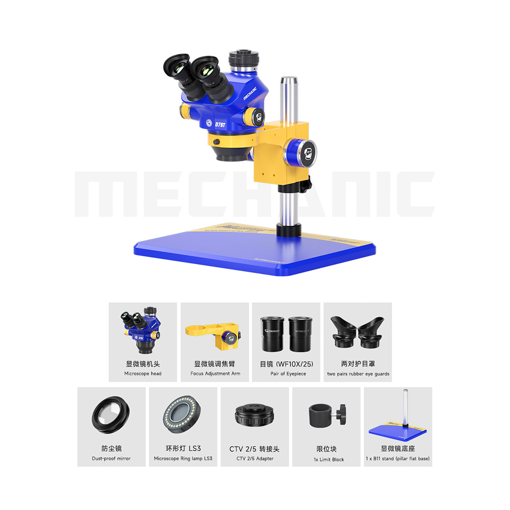 MECHANIC D75T -7X-5.0X HD OPTICA TRINOCULAR STEREO MICROSCOPE FOR PCB MOTHERBOARD INSPECTION.
